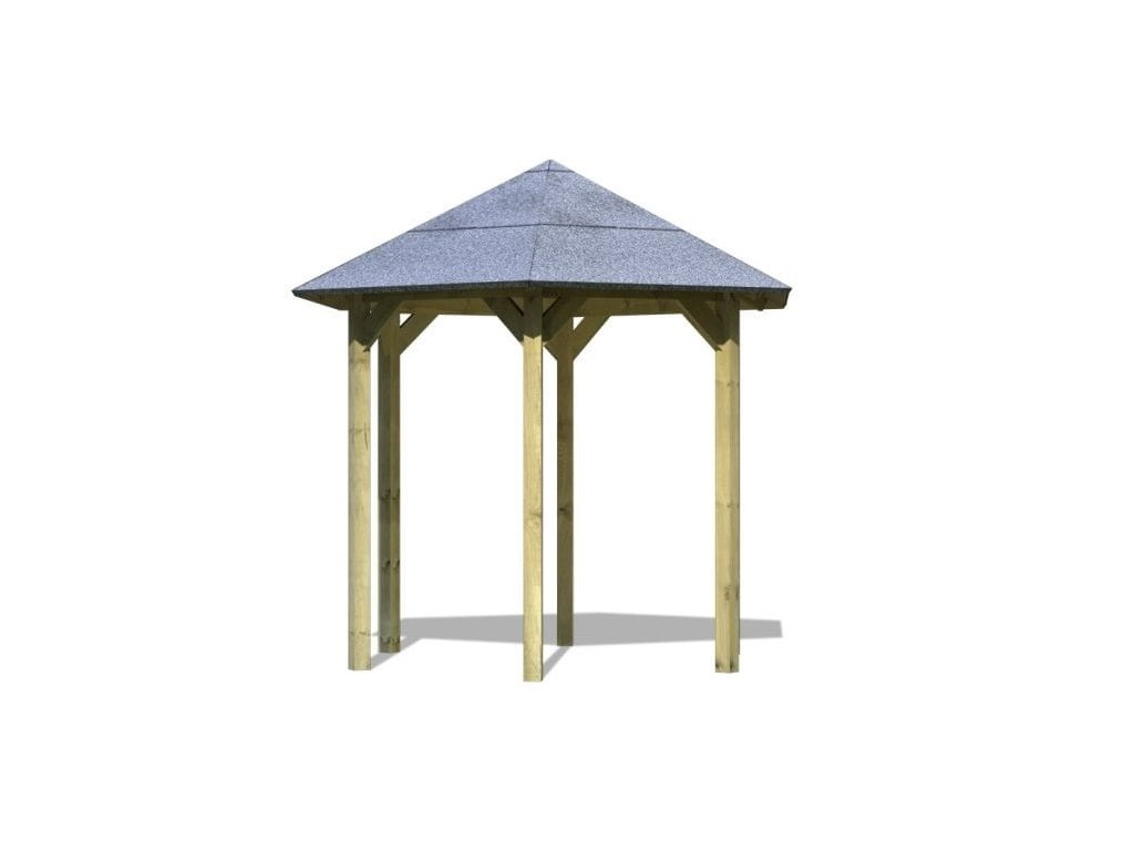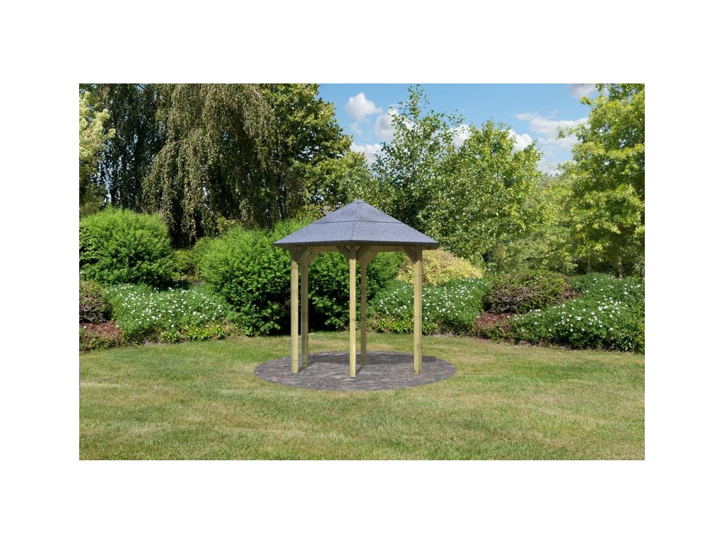 Pavilon má šesťboký tvar a slúži ako miesto odpočinku pre dve osoby. Šesť stĺpikov 9 x 9 cm podopiera strechu s masívnymi priečnymi podperami. Konštrukcia altánku je tlakovo impregnovaná a je tak dobre chránená proti drevokazným hubám aj hmyzu, ale aj proti nepriaznivým poveternostným podmienkam. Impregnácia je zdravotne nezávadná a úplne bezpečná. Vzhľadom na veľké plochy strechy a zaťaženie vetrom je nutné pripevniť altánok k zemi pomocou zodpovedajúcich H kotiev v dĺžke cca 60 cm (nie sú obsahom dodávky).