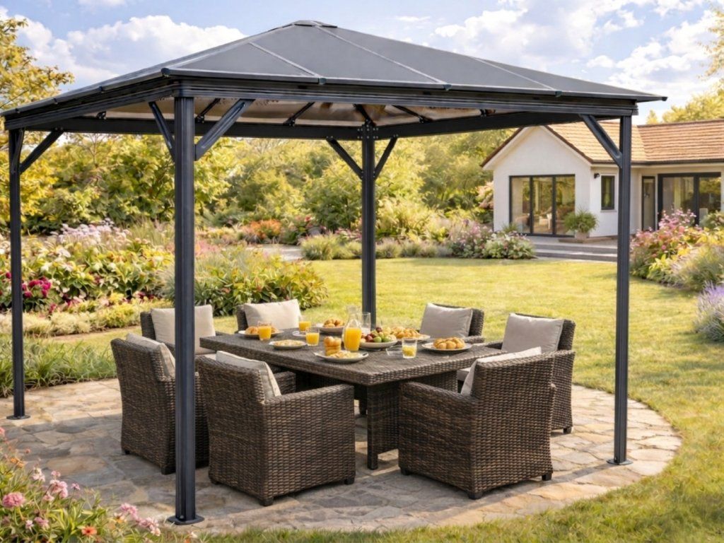 Hliníkový záhradný altánok LANITPLAST 33 antracit + číry PC