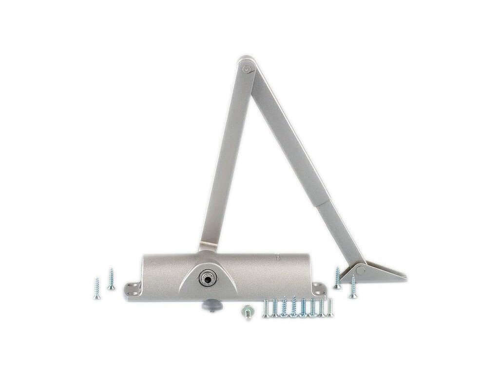 Dverový samozatvárač COBRA s ramenom bez zaistenia. Zatvárač dverí s hornou montážou pre jednokrídlové ľavé aj pravé dvere do 800mm. Vhodný aj pre dvere s protipožiarnym a protidymovým atestom. Samozatvárače sú určené predovšetkým pre mechanické zatváranie dverí.