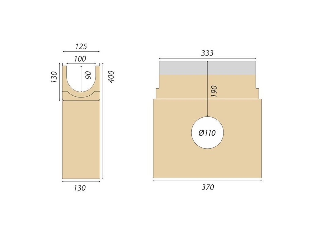 Tento typ zbernej vpusti ponúka jeden bočný odtok s vonkajším priemerom 110 mm a slúži ako doplnok pre napojenie odvodňovacích polymérbetónových žľabov BIELBET A15 o rozmere 130 x 130 mm s kanalizačným potrubím.